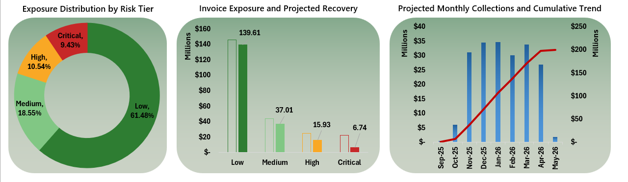 The projection indicates that the greatest cash flow erosion is concentrated within the critical segment, enabling prioritization of collection efforts and adjustment of cash flow forecasts accordingly