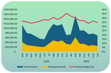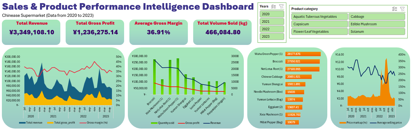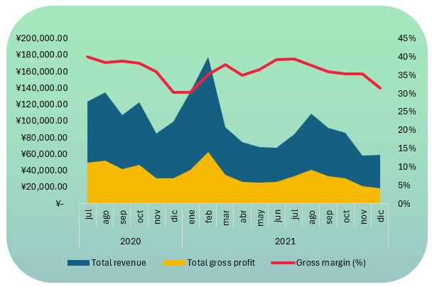 By integrating revenue, gross profit, margin behavior, product mix, and pricing trends, the dashboard reveals: