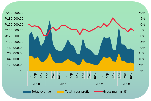 Revenue, Gross Profit & Gross Margin Over Time – Trend and structural evolution
