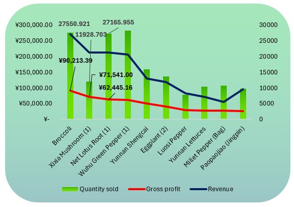 Indicates higher price positioning and stronger margin per unit.Net Lotus Root: High volume with moderate profitability