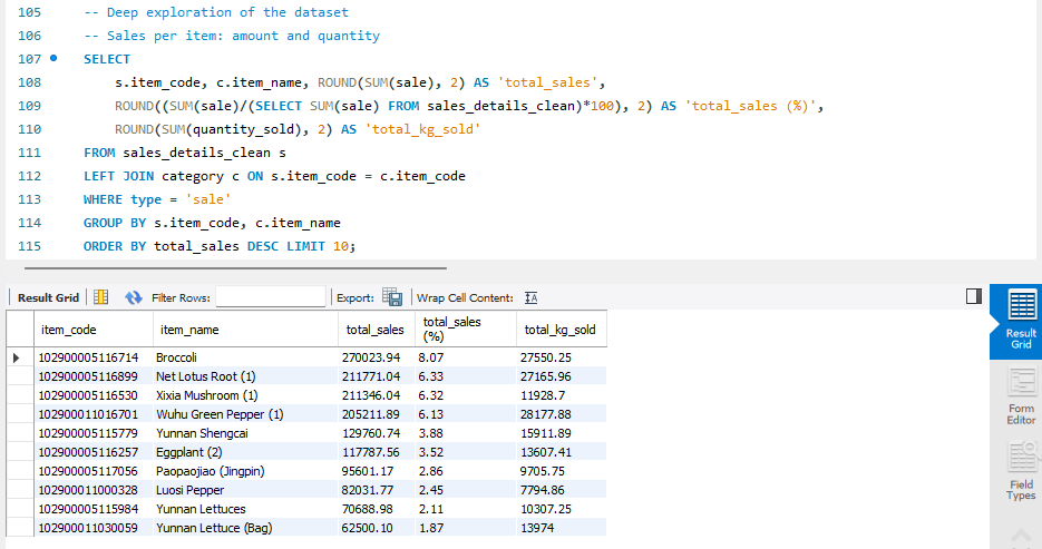 This project focuses on analyzing over 878,000 supermarket transactions across multiple food categories. Using SQL for data cleaning and analysis, followed by Tableau for visualization, the objective was to identify the top-performing products and categories, understand seasonal and weekly sales patterns, and uncover insights to support revenue optimization and inventory planning
